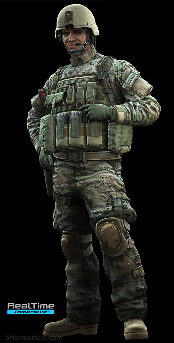 Textures by Brian Maricle (figure, head, pouches, gloves, body armor, etc.) and Justin Matos (helmet.)